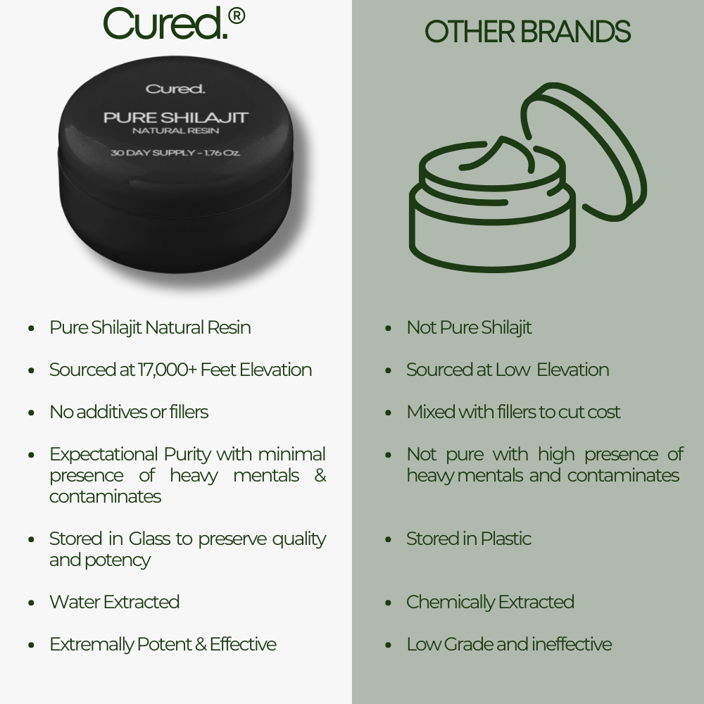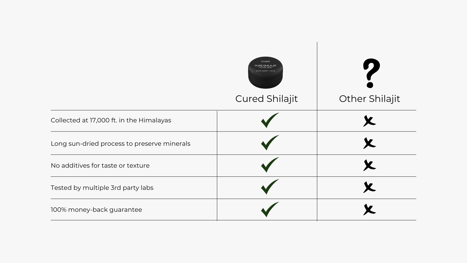 If you use Cured Shilajit for 30 days and don't experience an increase in your testosterone, sexual health, energy, and more, send an email to info@trycured.com we'll give you your money back, no questions asked.